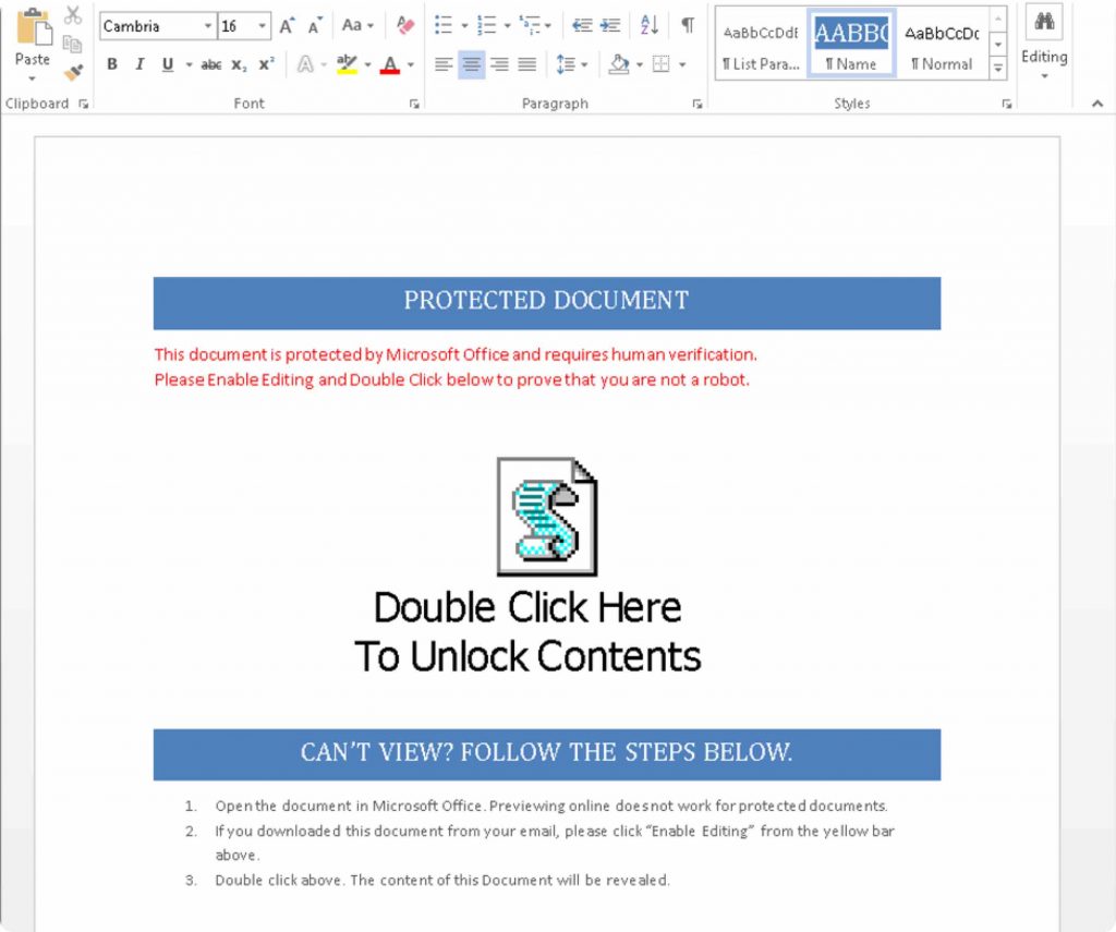 Figure 8, Bad Word Document. Only enable editing on Word documents from people you know.