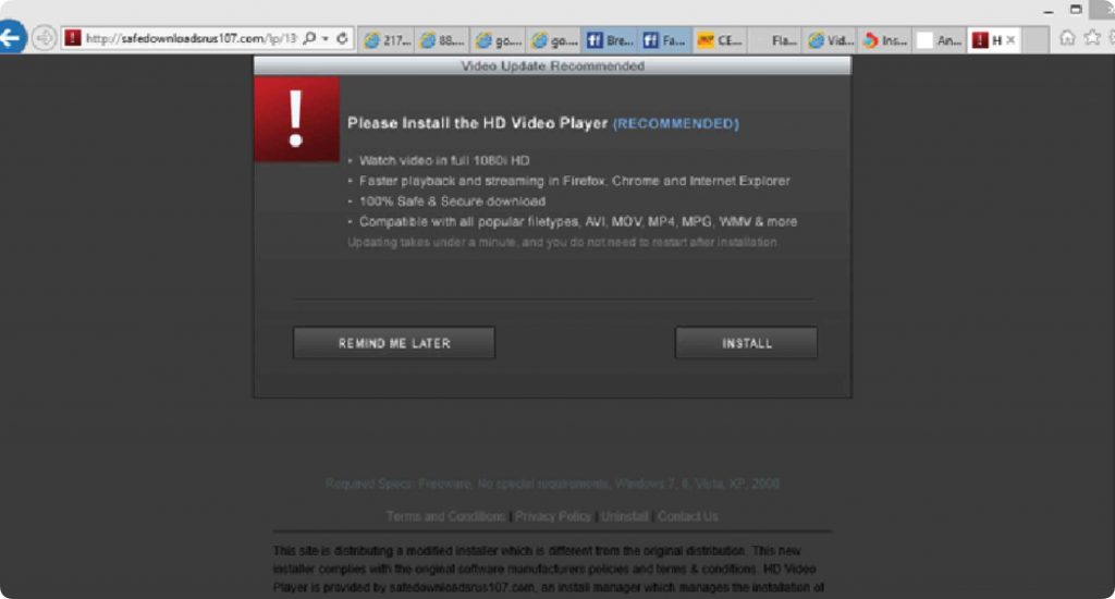 Any modern website should not need you to update or install anything. It’s just not necessary. If you must install something like Flashplayer or that special video player, exit out of the site that is requesting it and download from the original company like adobe.com/flashplayer/download. NEVER INSTALL SOMETHING FROM A POPUP AD. These malicious downloads are clever because the criminals copy the real messages from the real companies with dire warnings that need you to click immediately. Anything can wait to be updated or installed directly from your operating system or the software maker.