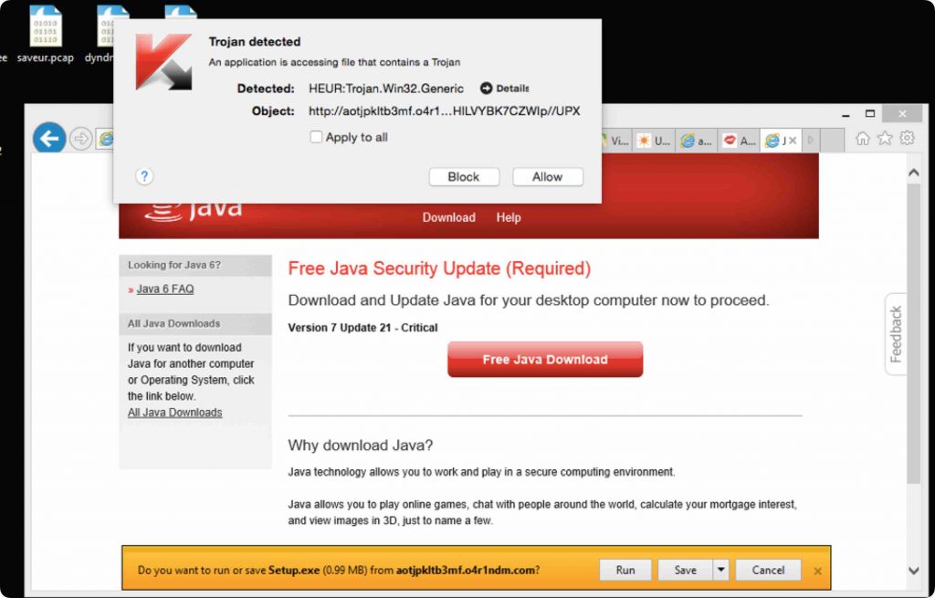 Figure 7, Fake Java Security Update. You can see that my anti-virus software caught it.